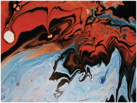 Dynamic abstract acrylic artwork featuring bold red and blue swirls for a striking visual impact.