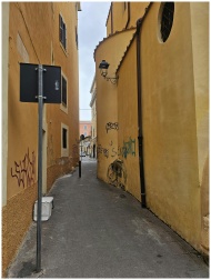 Narrow European Alleyway Graffiti