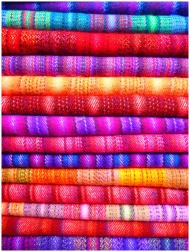 Close-up of vibrant and colorful textiles stacked