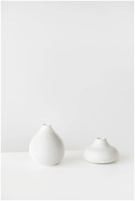 Elegant minimalist white ceramic vases on a blank background, perfect for modern decor.