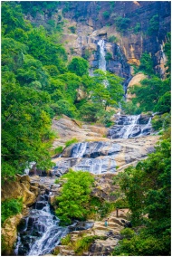 A breathtaking view of a cascading waterfall surrounded by lush greenery, perfect for nature enthusiasts.
