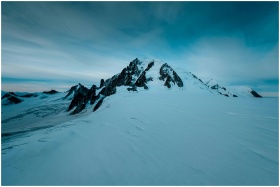 Breathtaking scene of snow-covered mountains and icy landscape in Haute-Savoie, France.