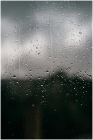 Captivating view of raindrops on glass with a blurred outdoor scene, evoking a moody atmosphere.