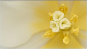 Macro shot capturing the soft yellow petals and vibrant center of a lily flower, showcasing natural beauty.