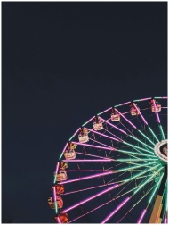 Colorful ferris wheel glowing in the night sky, capturing amusement park vibes.