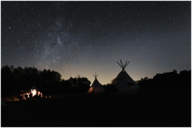Starry night view of teepee camp in North Carolina, perfect for nature and stargazing enthusiasts.