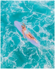 Aerial view of a woman surfing on vibrant turquois