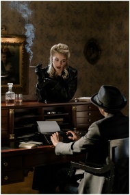 A classic noir scene featuring a mysterious woman