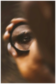 Captivating close-up of a person's eye reflected in a handheld mirror, invoking introspection.