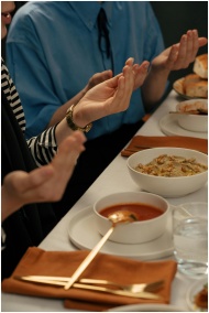 People praying before a meal during Ramadan, symbo