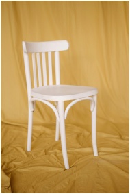 White wooden chair against a soft mustard backdrop