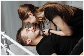 A joyful young couple enjoying intimate moments an