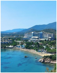 Stunning aerial view of a seaside resort surrounde
