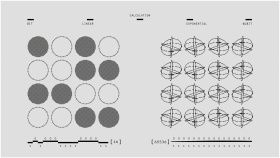 Visual representation of geometric calculations comparing bits and qubits in black and white.