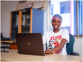 Positive young African American female freelancer