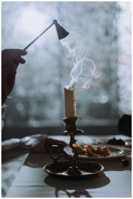 Hand snuffing a candle with elegant candlestick, s