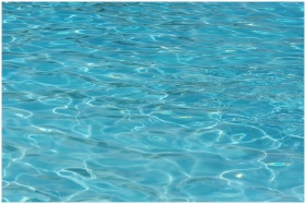A vibrant turquoise water surface, showcasing clea
