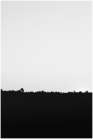A minimalist black and white image featuring a tree silhouette against a bright sky background.
