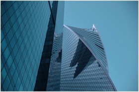 Modern skyscraper with glass facade and unique des