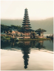 A serene view of Ulun Danu Beratan Temple with ref