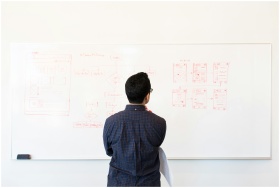 Man standing at a whiteboard planning UX design co