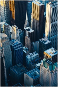 Dramatic aerial view of Chicago's iconic skyscrape
