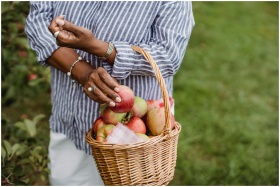 Woman harvesting apples in a rural orchard, showca