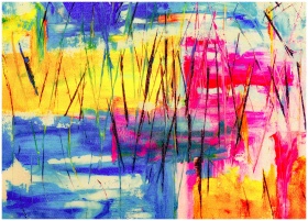 Colorful abstract painting with vivid brush strokes and dynamic textures.