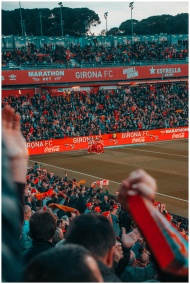 Excited fans cheer as Girona FC celebrates a goal