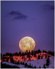 A breathtaking supermoon illuminating snow-covered hills under a purple sky in Wenatchee, WA.