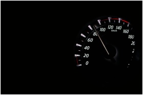 Speedometer reading showing speed in km/h on a dar