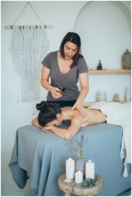 A serene spa massage with candles and essentials fostering relaxation and wellness.