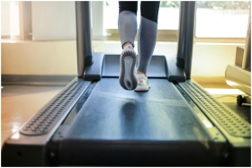 Close-up shot of a person exercising on a treadmil