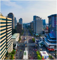 Aerial view of crowded Jakarta streets with tall b