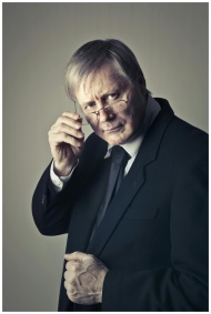 Serious senior adult man with glasses in a suit, conveying professionalism in a portrait shot.