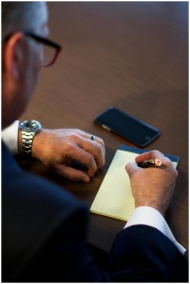 Close-up of a businessman writing notes in an offi