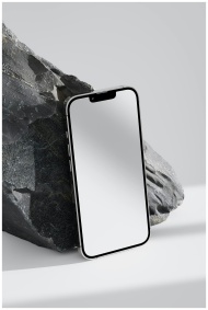 Close-up of a smartphone against a stone background, emphasizing modern design.