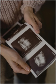 Hands gently holding ultrasound images, depicting