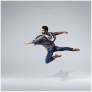 A male contemporary dancer in casual wear leaping