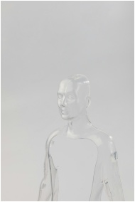 Glass-like transparent mannequin against a light b