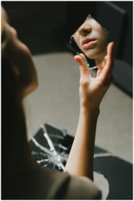 Close-up of a teenage girl holding a broken mirror