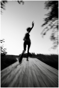 Blurred motion black and white photo of a person r