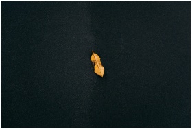 Minimalist photo of a single yellow leaf on a dark