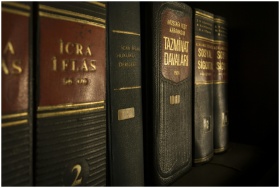 Detailed close-up of law and regulation books on a