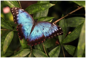 Close-up of a stunning Blue Morpho butterfly perch