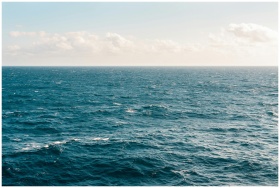 Tranquil ocean view under a clear sky, capturing the serene beauty of the expansive water.