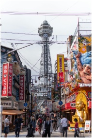 Bustling street near Tsutenkaku Tower, Osaka. Vibr
