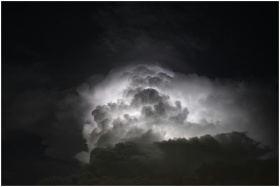 Powerful lightning illuminates dark storm clouds a