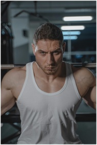 A muscular man flexing his biceps and showcasing s
