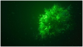 A vivid underwater green explosion creating a stunning abstract visual effect.